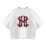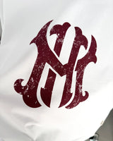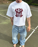 'MH' Burgundy Digital Print front artwork. 'MAISONHOST®' cotton tag sewn on the left side of the T-shirt.