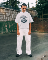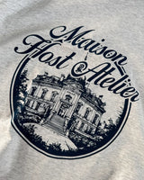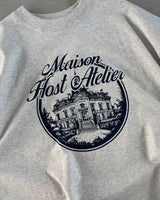 'Maison Host Atelier' Blue Digital Print front artwork. 'MAISONHOST®' cotton tag sewn on the left side of the T-shirt.