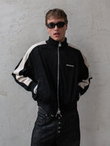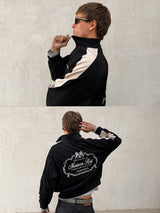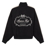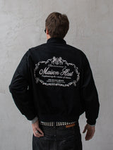 Features two-tone sleeves, a double metal zipper with engraved H shields, and a metal MAISON HOST logo on the left chest.