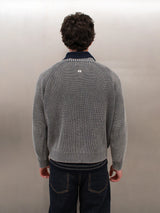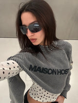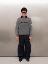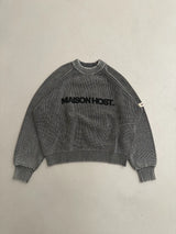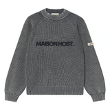 Features a front MAISONHOST print, a fabric patch on the left sleeve, and a metal logo on the back. Crafted in heavyweight knit for a clean and structured finish.