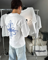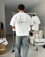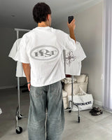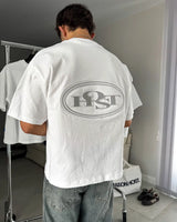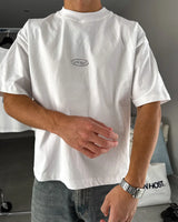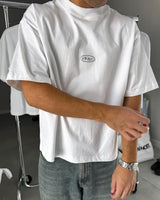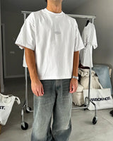 White tee with dropped shoulders