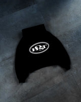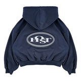 Navy hoodie 'HOST' silver threads patch embroidered on the front. Light reflective 3D embossed logo on the back.