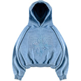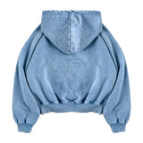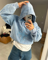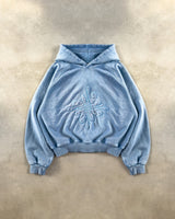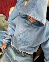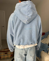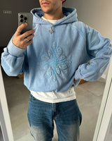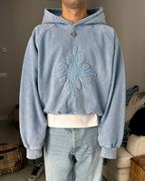 Dyed & washed vintage blue hoodie 'ICONFLOWER logo' blue color Chain Embroidered on the front. "LAMAISON" blue color Chain embroidered on the back.