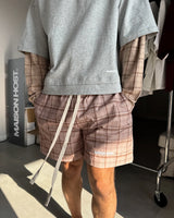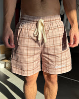 Light Brown checked swim pants. Complete inner netting.