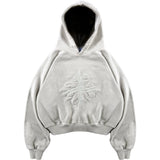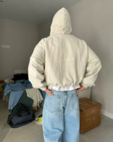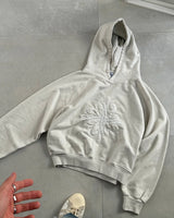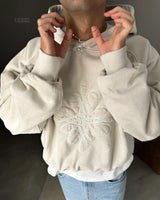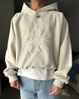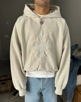 Dyed & washed vintage Sand hoodie 'ICONFLOWER logo' Sand color Chain Embroidered on the front. "LAMAISON" Sand color Chain embroidered on the back.