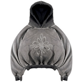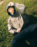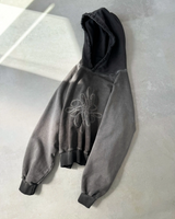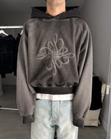 Dyed & washed vintage faded smoke brown hoodie 'ICONFLOWER logo' dyed color Chain Embroidered on the front. "LAMAISON" dyed color Chain embroidered on the back.