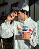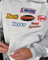 Ash grey hoodie 'SNACKS' logos printed on the front.