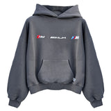 Washed dark grey hoodie 'SPORTLINE' Silver "metallic" patches on the front. Icon flower pocket label.