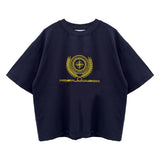 'HOSTLAMAISON' lettering imprinted in Yellow on the front. Distressed broken details on the top bottom and sleeves. Back Yellow tag