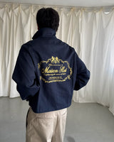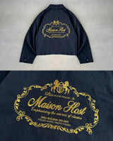 Features a double metal zipper with the MaisonHost “H” emblem engraved on both pullers. The back showcases an intricate “Bienvenue à Maison Host” embroidered artwork, inspired by classic French ornamental motifs.