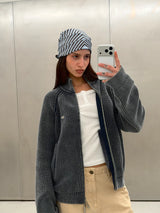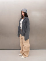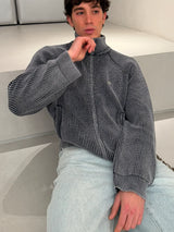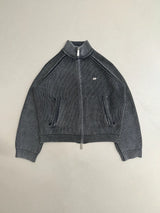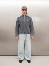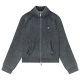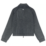 Double custom zipper with MAISON HOST detailing, side pockets, and the brand’s signature H logo in silver metal on the left chest, with a matching metal logo below the back neckline.