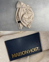Navy leather patch with metallic MAISONHOST® lettering on the back waist.
