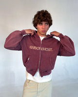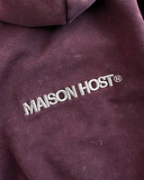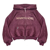 Signature Wavy Arms curved sleeve construction. Double metal zipper engraved with MAISONHOST®, front print and tonal back embroidery.