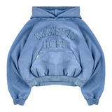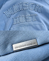 This hoodie features a cropped fit and a distinctive front MAISON HOST appliqué logo, creating a textured and elevated look.