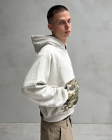 Grey heavyweight hoodie crafted from 100% cotton, 400GSM.